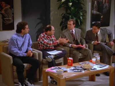 Jerry and Kramer work with the TV counterparts of Elaine and Kramer, giving their character a background, while Elaine tries to get a job at Monk's. She is rejected, and files a report at the Equal Employee Opportunity Commission.